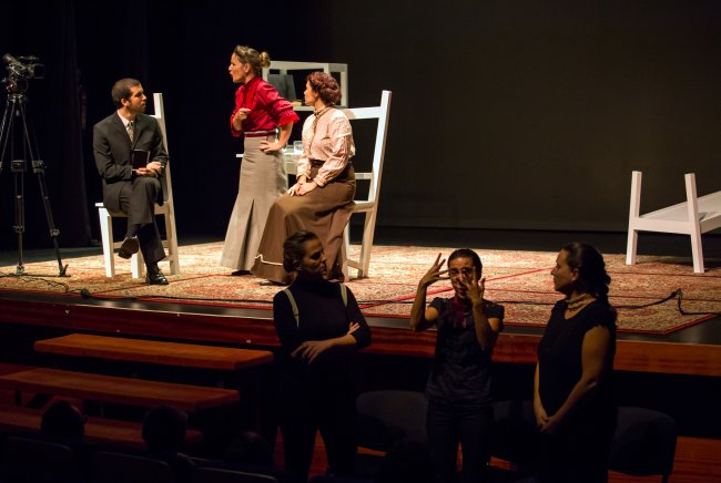 Ensayo general de la obra con intérpretes de lengua de signos. Foto: Daniel López/IAC.