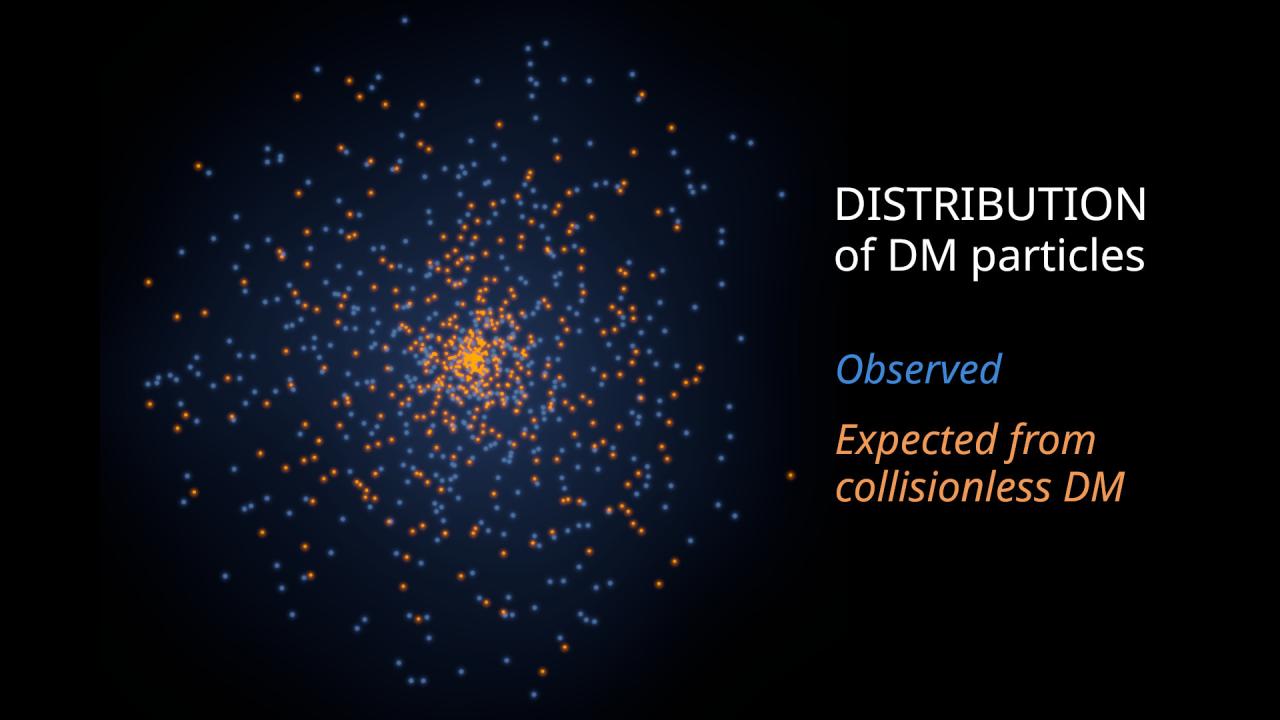 Simulación que ilustra la distribución de partículas de materia oscura esperadas en una galaxia de baja masa si la materia oscura no colisionara (en naranja, concentrada hacia el centro) comparada con la distribución de materia oscura observada (en azul, mucho más dispersa)./ Gabriel Pérez