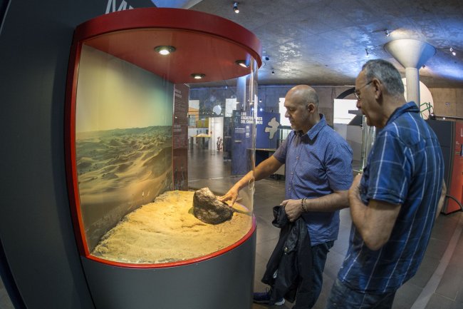 Nicolás Melini con Antonio Manpaso, director del Museo de la Ciencia y el Cosmos. Crédito: Elena Mora (IAC).