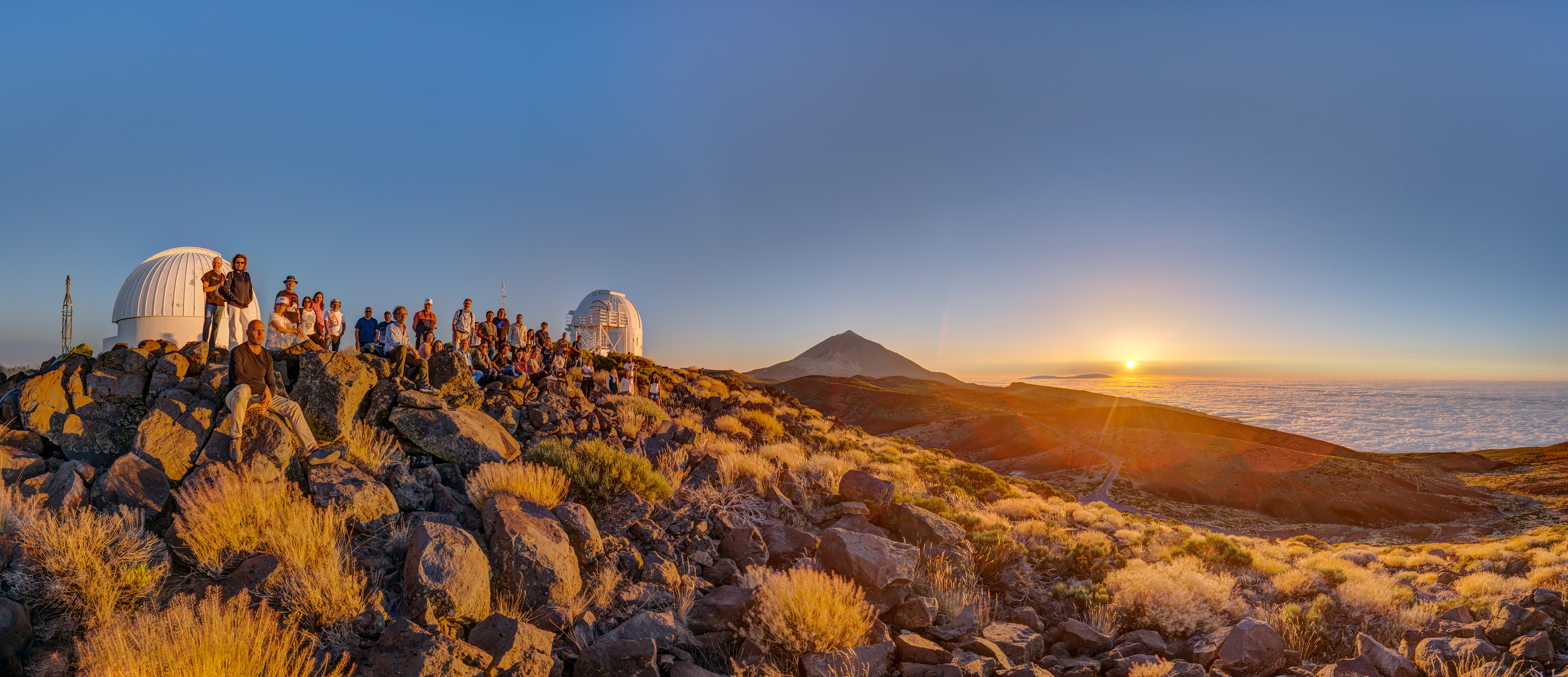 Profesores durante la puesta de Sol con el Teide de fondo. Crédito: Daniel López / IAC.
