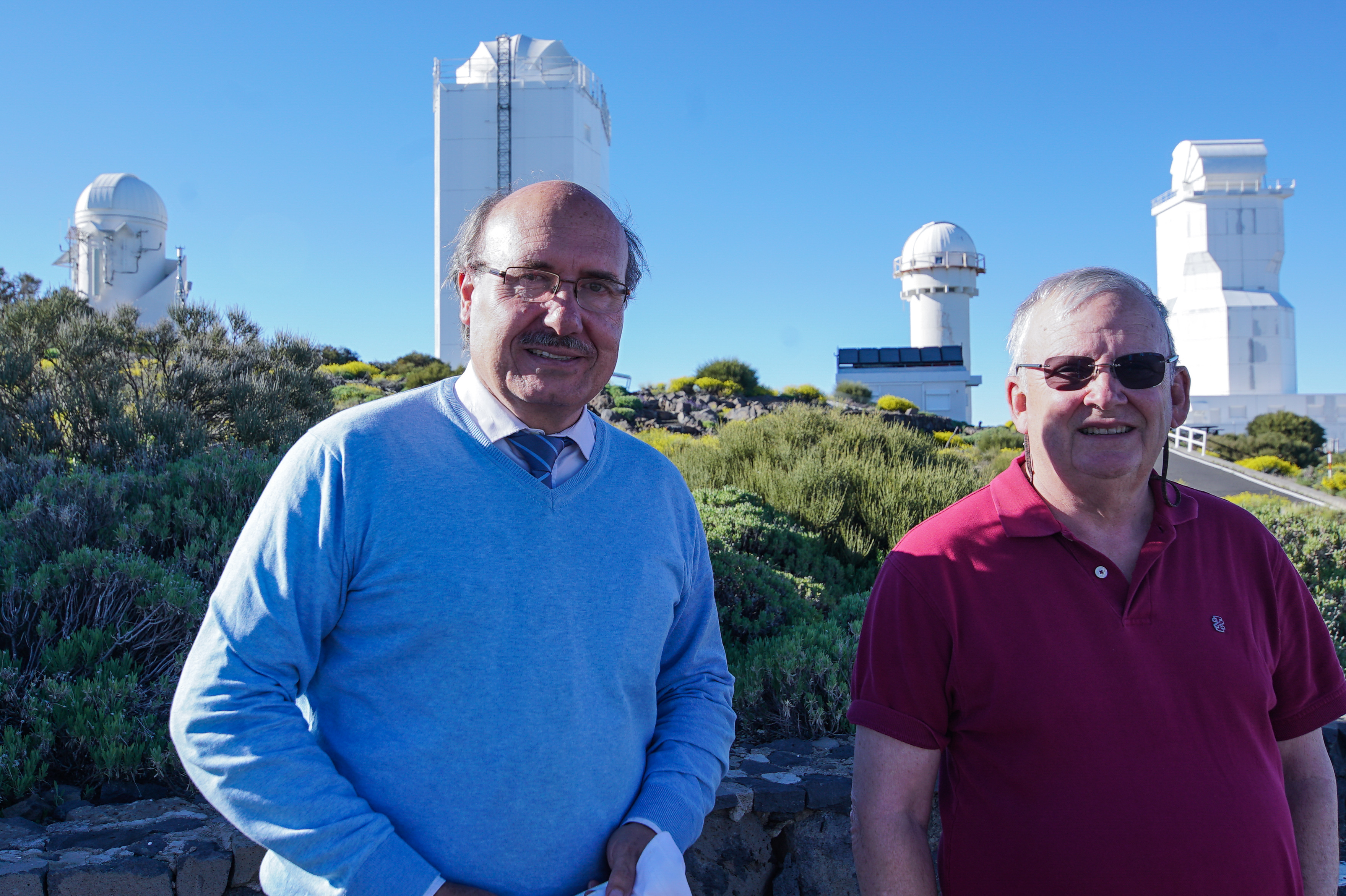 De izquierda a derecha: Rafael Rebolo y Wayne Rosing, durante su visita al Observatorio del Teide. Crédito: Tamara Tayri Muñiz Pérez (IAC)