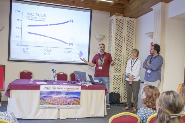 Monique Gómez, David S. Aguado y Julio Castro-Almazán, de la Comisión de Igualdad del IAC. Crédito: Elena Mora (IAC).