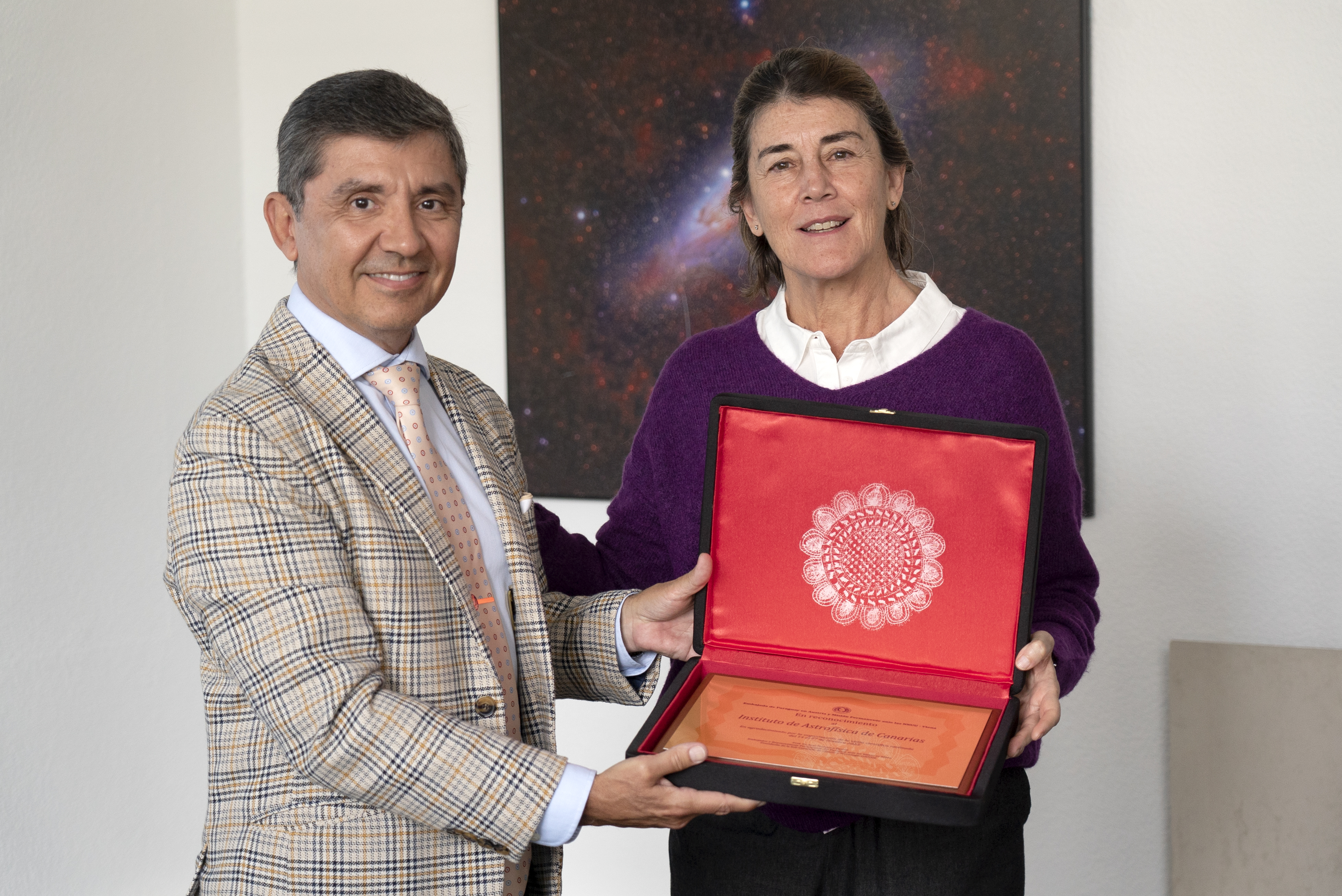 Visita de COPUOS al IAC Descargar Embajador representante permanente ante los Organismos Internacionales con sede en Viena de Paraguay, Juan Francisco Facetti, y la subdirectora del IAC, Casiana Muñoz Tuñón. Crédito: Alejandra Rueda (IAC) Fecha de realización 28/10/2022 Autores Créditos COMUNICACIÓN Y CULTURA CIENTÍFICA Obtenido en Sede Central Categoría Eventos y actividades