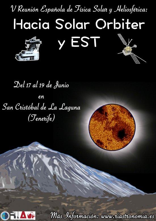 La Red de Infraestructuras de Astronomía (RIA) y el Instituto de Astrofísica de Canarias (IAC) organizan la V Reunión Española de Física Solar y Heliosférica que se celebrará en Casa-Albar, en La Laguna (Tenerife), del 17 al 19 de junio de 2015. La reunión pretende consolidar y acrecentar los contactos y colaboraciones entre los distintos grupos españoles que trabajan en las diferentes ramas de investigación en la Física del Sol y de la Heliosfera, sobre todo de cara a optimizar el aprovechamiento de las dos infraestructuras solares de los próximos años en las que participa la comunidad científica nacional: Solar Orbiter y EST.